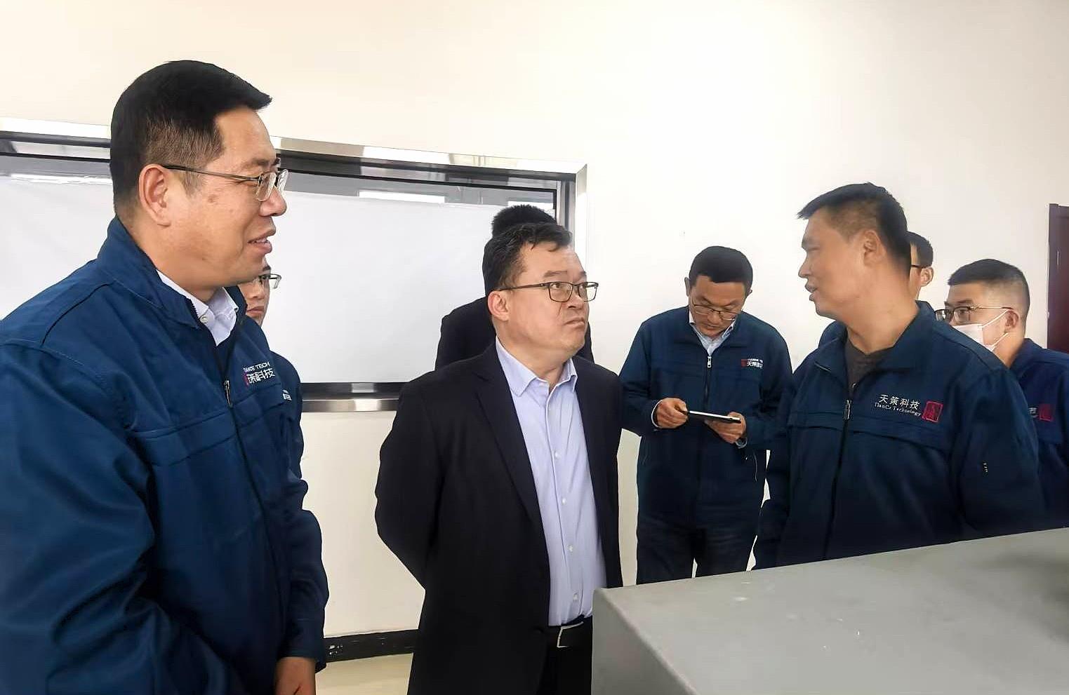 蘇旭盛一行參觀了生產(chǎn)、研發(fā)現(xiàn)場,詳細(xì)聽取了天策公司關(guān)于生產(chǎn)及新產(chǎn)品研發(fā)等工作的匯報,并與天策公司班子成員、技術(shù)研發(fā)部門負(fù)責(zé)人進(jìn)行了座談交流。