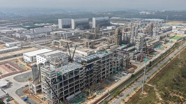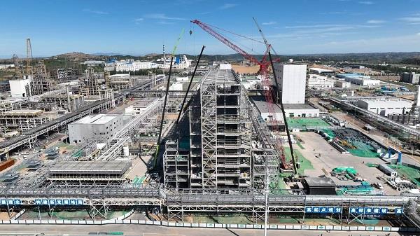 工程進(jìn)度全面領(lǐng)先。至今年10月初,項(xiàng)目主體結(jié)構(gòu)已全面封頂,巍然聳立的鋼構(gòu)框架與核心設(shè)備勾勒出壯觀的工業(yè)圖景;地下管網(wǎng)系統(tǒng)與一期工程實(shí)現(xiàn)無縫對(duì)接;廠區(qū)道路、圍墻等配套設(shè)施輪廓初顯,現(xiàn)代化工廠的宏偉藍(lán)圖正加速轉(zhuǎn)化為現(xiàn)實(shí)。
