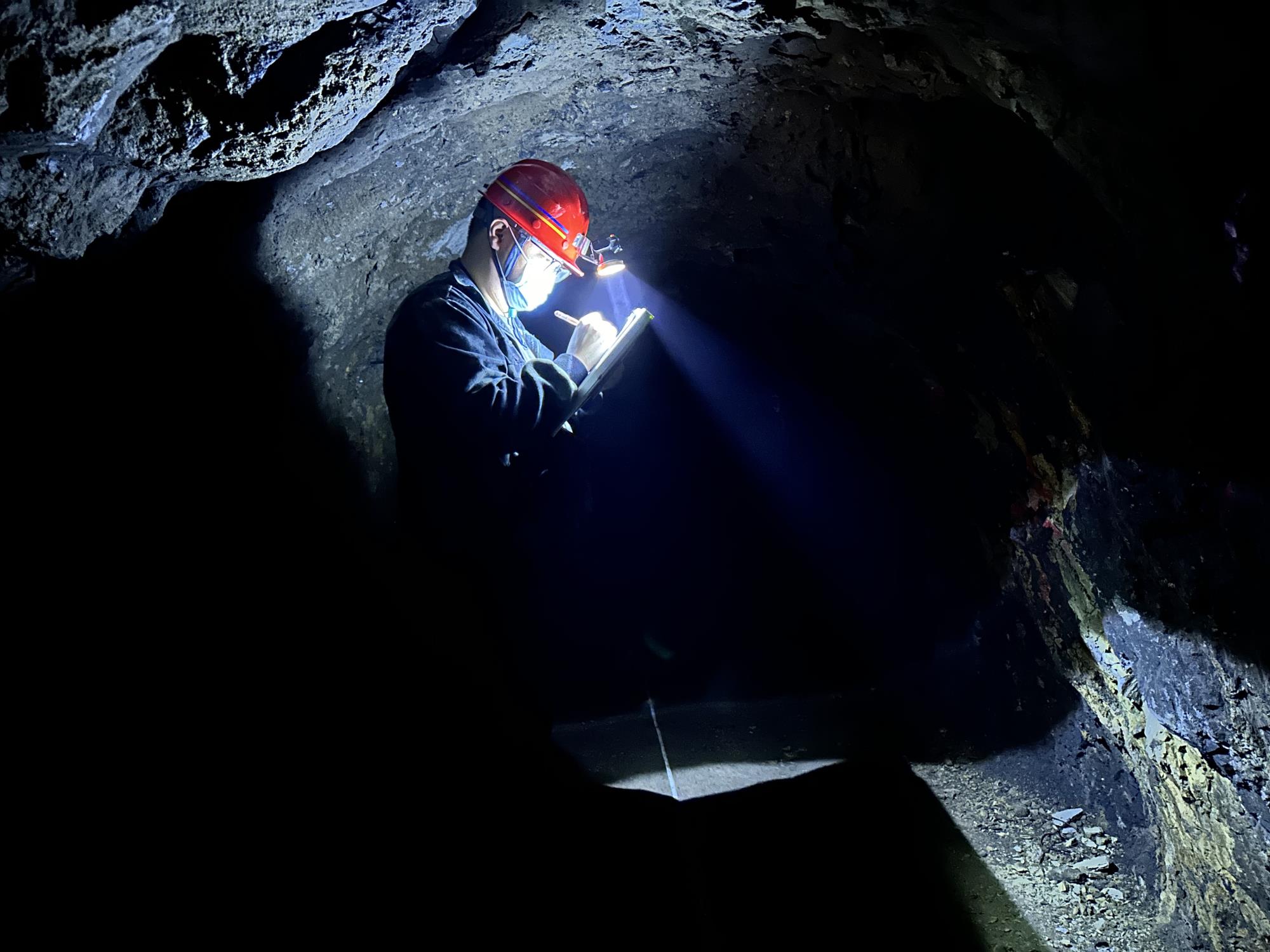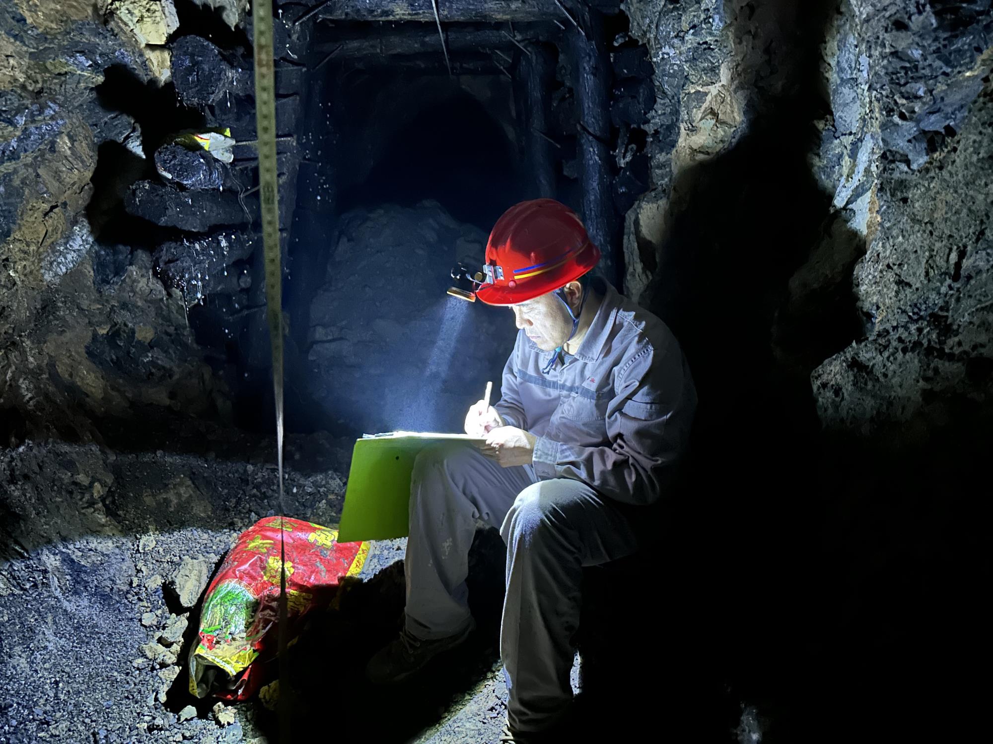 當(dāng)寨子溝礦區(qū)樣品送檢后,坑道成了我的另一個(gè)課堂。師父教我測(cè)量各類產(chǎn)狀,教我展點(diǎn)和產(chǎn)狀,教我如何勾畫(huà)地質(zhì)界線……水珠從坑道頂板滴落,在礦燈光束里拉出銀線。師父的筆尖在巖壁上游走如活物,筆尖順層理滑動(dòng),在圖紙上旋出流暢的曲線。昏暗光線下,那墨線竟有了生命般微微搏動(dòng)——巖石的密碼被解開(kāi)一道縫隙,礦脈的暖流正滲出石壁。地質(zhì)錘叩擊巖壁的顫音未散,巖石紋層間簌簌剝落的碎屑里,恍有古河道裹挾風(fēng)沙的呼嘯掠過(guò)指腹。
