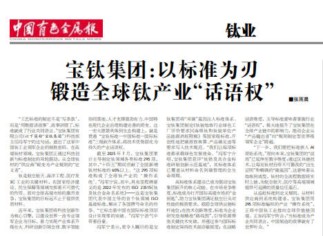 從追趕標準到定義規(guī)則,從材料供應商到系統(tǒng)構(gòu)建者,寶鈦集團用295項標準編織的產(chǎn)業(yè)“操作系統(tǒng)”,正將中國鈦工業(yè)推向全球價值鏈頂端。正如馮軍寧所言:“當標準成為產(chǎn)業(yè)共同語言,中國制造的故事就有了世界聽眾。”