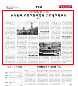 強風(fēng)識勁草,路遙知馬力。身處經(jīng)濟寒冬的漢中鋅業(yè)有限責(zé)任公司(以下簡稱“漢中鋅業(yè)”)經(jīng)受住了原料供應(yīng)和產(chǎn)品銷售的雙重壓力,作為一家“兩頭在外”的有色冶煉加工企業(yè),夾縫生存,逆勢奮進,走過了極不平凡的2016年,順利實現(xiàn)了“十三五”開門紅。