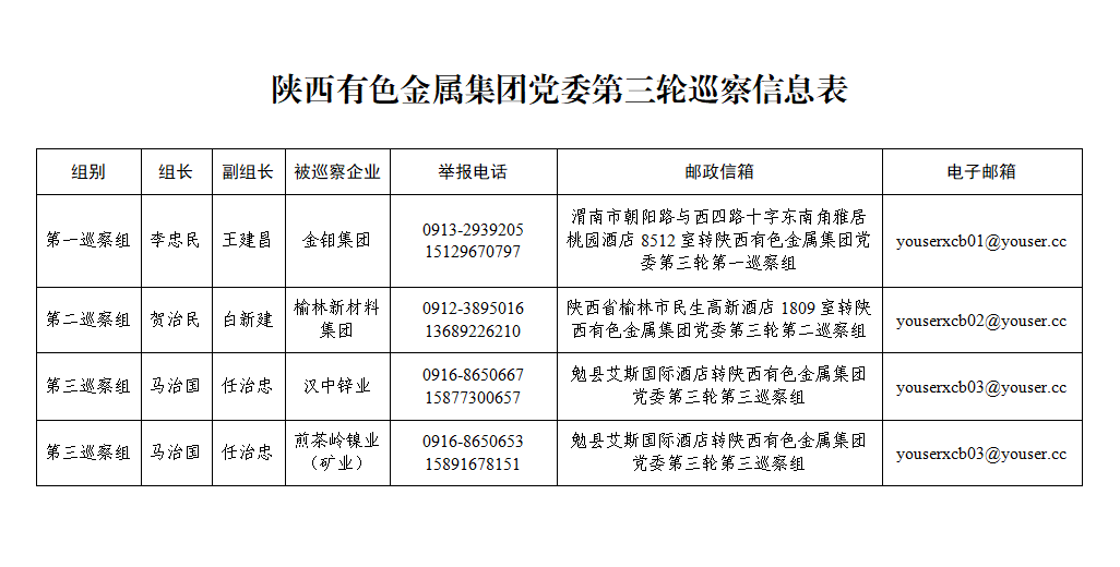 根據(jù)陜西有色金屬集團黨委關(guān)于巡察工作的統(tǒng)一部署,截至5月13日,陜西有色金屬集團黨委第三輪3個巡察組完成對金鉬集團、榆林新材料集團、漢中鋅業(yè)和煎茶嶺鎳業(yè)(礦業(yè))的進(jìn)駐工作。
