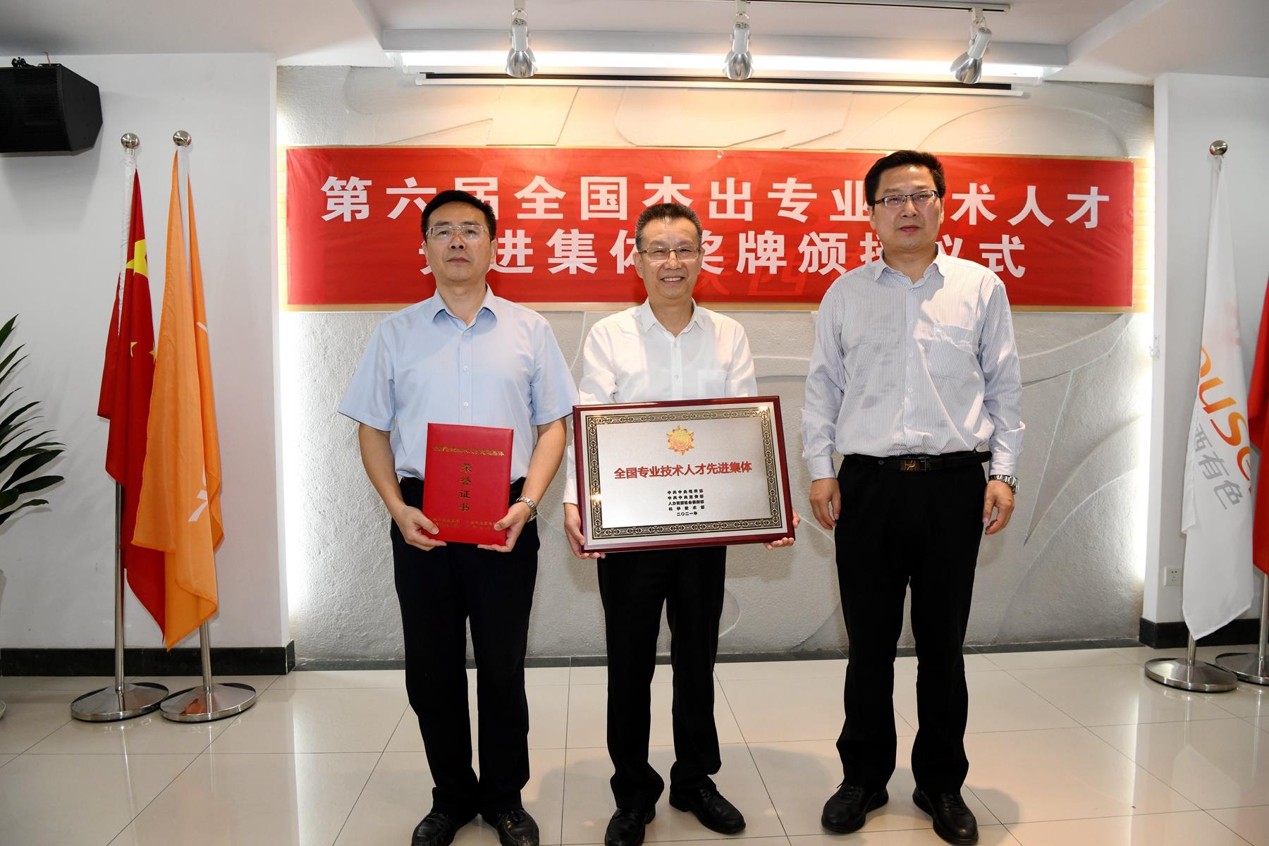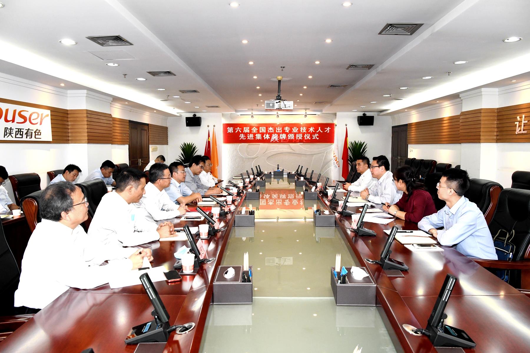 9月27日,陜西省人力資源和社會保障廳、陜西省國資委聯(lián)合在陜西有色金屬集團總部舉行頒授儀式,向?qū)氣佇虏牧涎邪l(fā)創(chuàng)新團隊頒發(fā)第六屆“全國專業(yè)技術人才先進集體”獎牌及證書。