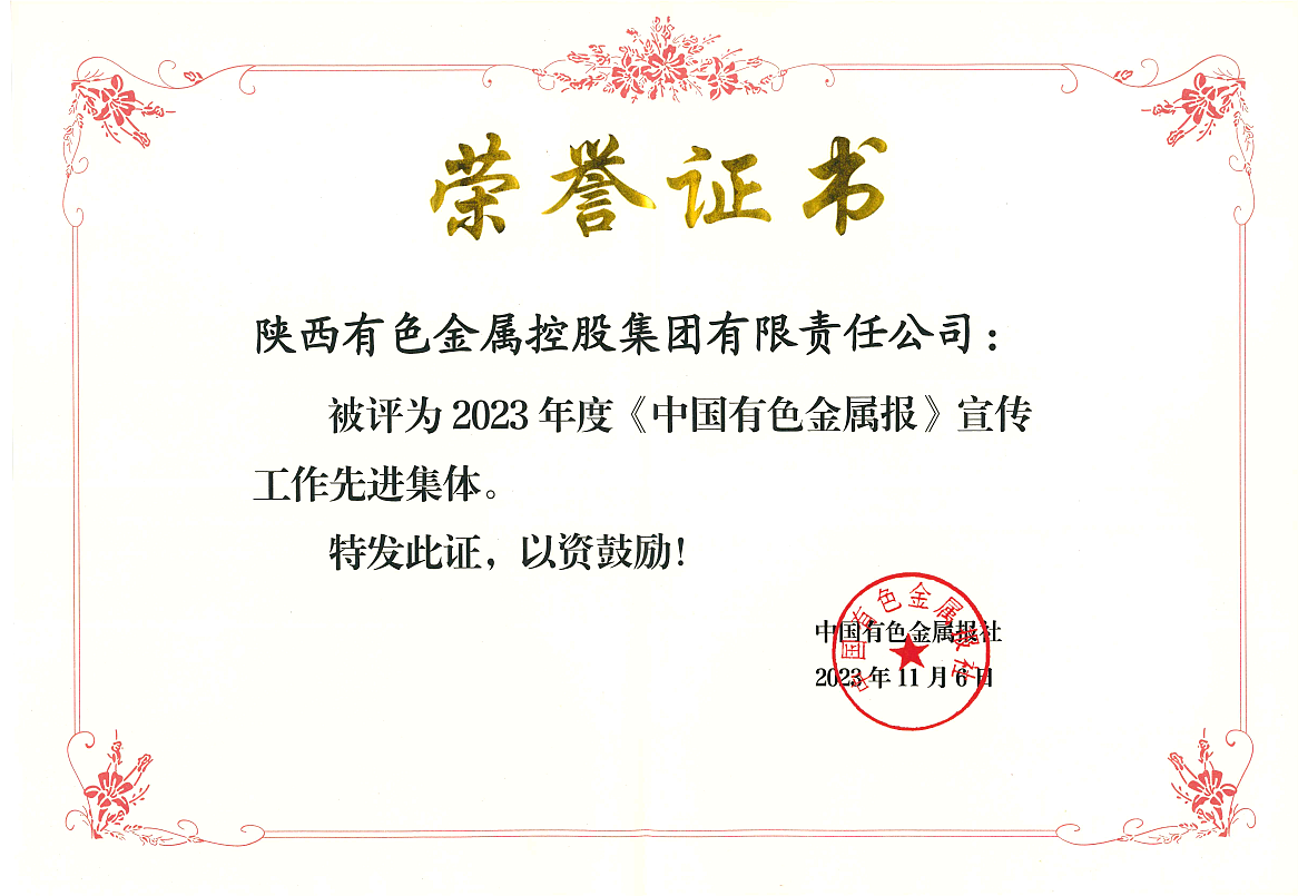 近日,陜西有色金屬集團被中國有色金屬報社評為2023年度宣傳工作先進集體。這是在前不久榮獲《中國有色金屬》雜志社宣傳工作先進單位之后,該集團在宣傳工作方面獲得的又一殊榮。