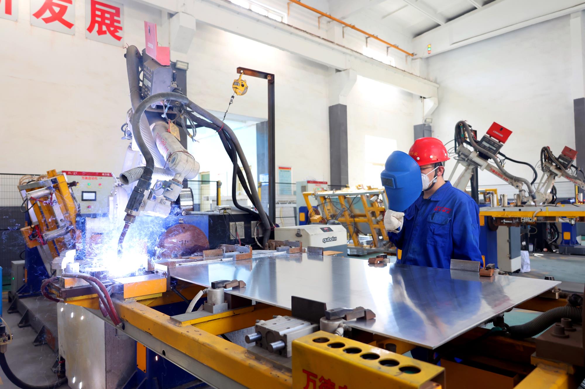 陜西鋅業(yè)機動車間職工操作機器人焊接鋅板。