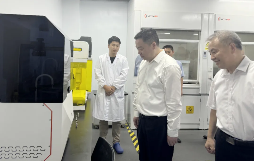 莫勇一行深入西安匯創(chuàng)公司產(chǎn)品展廳、掃描電鏡及3D打印表面處理室、貴金屬分析儀器室、貴金屬氫能催化研究室及金屬3D打印研究室現(xiàn)場了解企業(yè)發(fā)展和生產(chǎn)經(jīng)營等情況,并同公司領(lǐng)導(dǎo)班子座談交流。
