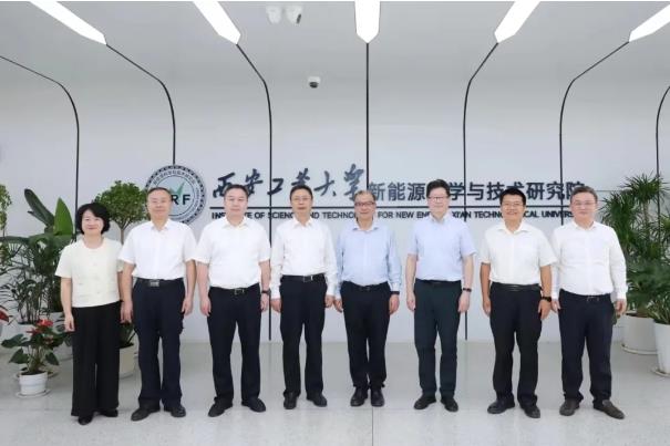 簽約儀式前,吳群英一行參觀了西安工業(yè)大學(xué)新能源科學(xué)與技術(shù)研究院,該院創(chuàng)立于2020年,以儲氫材料及器件、二次電池電機(jī)關(guān)鍵原材料及高性能二次電池、光、電催化為主要研究方向。