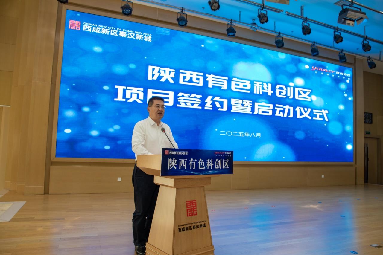 西咸新區(qū)黨工委委員,秦漢新城黨委書記、管委會主任周東在致辭中表示,此次簽約的科創(chuàng)區(qū)項目,是陜西有色金屬集團實施高質(zhì)量發(fā)展、推進科技創(chuàng)新和金屬產(chǎn)業(yè)轉(zhuǎn)化的重大戰(zhàn)略布局,投資體量大、科技含量高,聚焦碳硅新材料、金屬基復(fù)合材料、無人機與機器人等前沿領(lǐng)域,加速高端人才聚集和關(guān)鍵技術(shù)突破,著力打造集科創(chuàng)研發(fā)、商務(wù)辦公于一體的現(xiàn)代化產(chǎn)城融合發(fā)展示范區(qū),必將成為西咸新區(qū)乃至西安市、陜西省高質(zhì)量發(fā)展的新活力來源,為陜西推動秦創(chuàng)原建設(shè)、發(fā)展新質(zhì)生產(chǎn)力增添巨大動能。秦漢新城將始終以“企業(yè)有需、我必有應(yīng)”為宗旨,全心全意為項目建設(shè)做好服務(wù)保障,確保早建成、早投產(chǎn)、早達效。