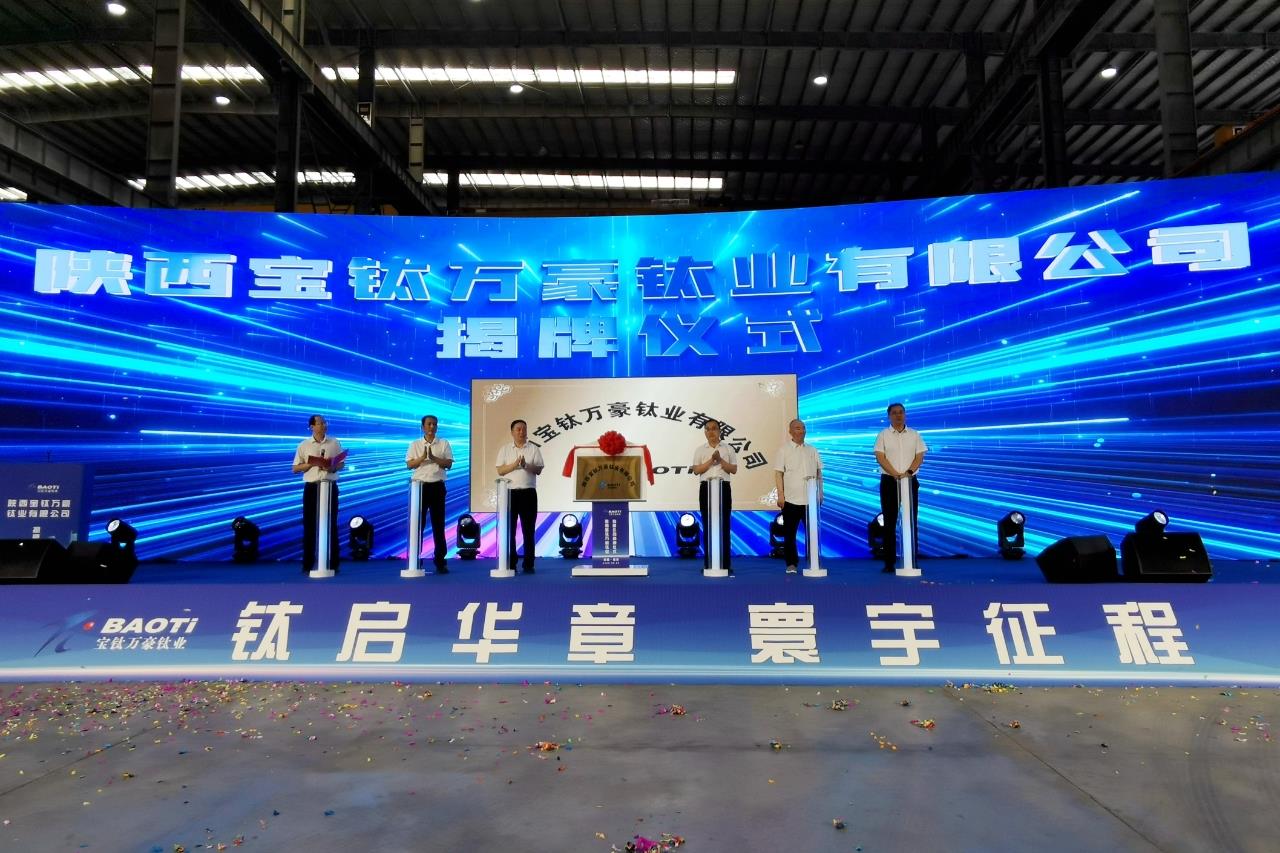8月26日,陜西寶鈦萬(wàn)豪鈦業(yè)有限公司揭牌儀式在寶雞舉行。陜西有色金屬集團(tuán)黨委副書(shū)記、董事、總經(jīng)理莫勇,寶雞市人民政府黨組成員、副市長(zhǎng)張昭出席并揭牌。