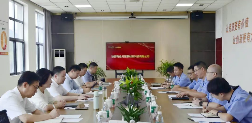 8月27日,陜西有色金屬集團(tuán)黨委副書記、董事、總經(jīng)理莫勇一行赴陜西有色天策科技有限公司調(diào)研“生產(chǎn)經(jīng)營、上市培育、產(chǎn)業(yè)項目謀劃”等工作,并對企業(yè)下一步改革發(fā)展工作提出要求。