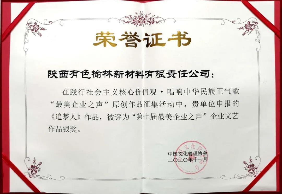 榮譽(yù)彌足珍貴,意義非凡,是鼓勵(lì)更是鞭策,榆林新材料集團(tuán)將持續(xù)推進(jìn)企業(yè)文化建設(shè),以創(chuàng)新謀發(fā)展,用更多榮譽(yù)成果為新材料集團(tuán)成立10周年獻(xiàn)禮,為陜西有色金屬集團(tuán)20周年增光添彩。