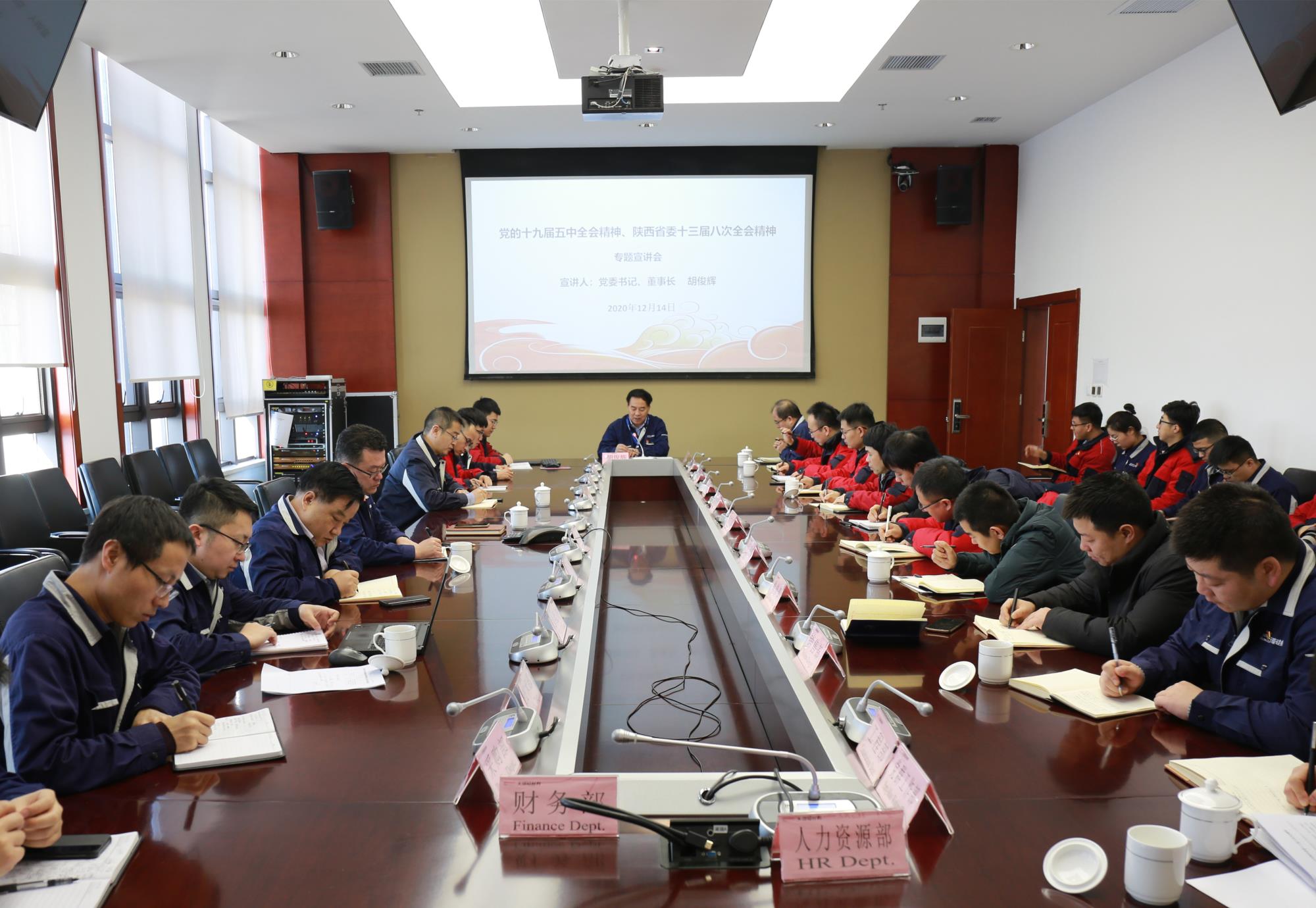 12月14日上午,天瑞硅材料在公司行政樓四樓視頻會(huì)議室召開(kāi)黨的十九屆五中全會(huì)精神暨陜西省委十三屆八次全會(huì)精神專(zhuān)題宣講會(huì),陜西有色金屬集團(tuán)宣講團(tuán)成員、天瑞硅材料黨委書(shū)記、董事長(zhǎng)胡俊輝主講。公司班子成員、中層干部及職工代表40余人參加了宣講會(huì)。