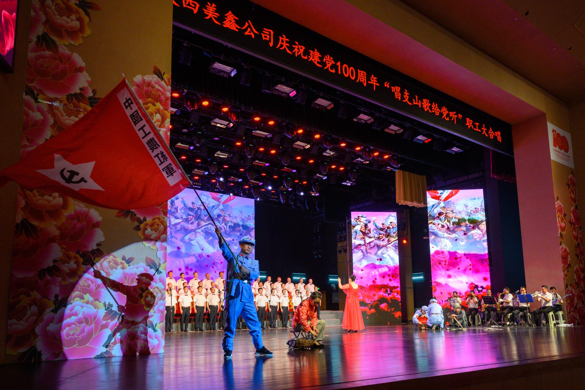 為熱烈慶祝中國共產黨成立100周年,緬懷黨的奮斗歷史,謳歌黨的光輝歷程,進一步營造公司全體職工愛國愛黨愛企的濃厚氛圍,激勵全體干部職工傳承紅色基因、賡續(xù)精神血脈、凝聚奮進力量、唱響新時代主旋律。6月18日,由陜西美鑫公司黨委主辦、公司工會承辦的“唱支山歌給黨聽”職工大合唱比賽在銅川工人文化宮圓滿落幕。