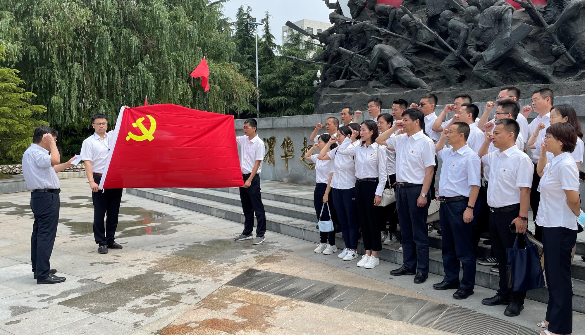 渭華起義紀(jì)念碑前,全體黨員在黨委書記葛琦的帶領(lǐng)下,面對(duì)黨旗,重溫入黨誓詞,誓言鏗鏘有力,振奮人心。