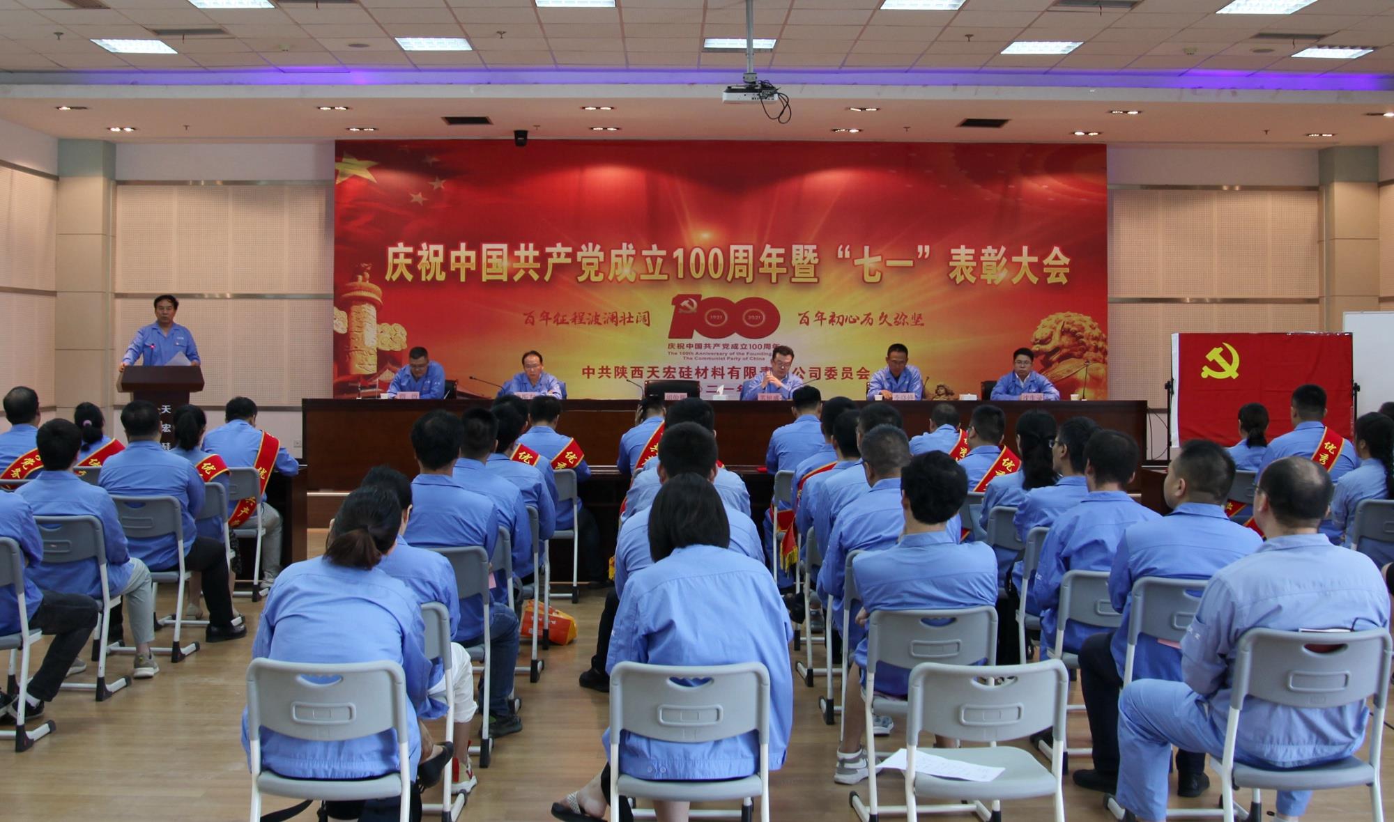 為慶祝中國共產(chǎn)黨成立100周年,7月7日上午,天宏硅業(yè)隆重召開慶祝建黨100周年暨“七一”表彰大會。公司領(lǐng)導(dǎo)班子成員、副總工程師、中層干部、在崗黨員及預(yù)備黨員共計50余人參加。公司黨委書記、董事長胡俊輝出席大會并講話。黨委副書記、總經(jīng)理蘇旭盛主持。