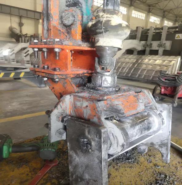 對(duì)多功能天車擰頭部件進(jìn)行技改。部分電解槽槽齡較大總高偏高,導(dǎo)致多功能天車陽(yáng)極扳手行程不夠,不能對(duì)陽(yáng)極導(dǎo)桿小盒夾具進(jìn)行緊固,只能人工登槽緊固小盒夾具,既費(fèi)力費(fèi)時(shí)又存在極大安全風(fēng)險(xiǎn)。通過(guò)討論試驗(yàn),在未改變?cè)邪踩O(shè)計(jì)結(jié)構(gòu)的情況下,對(duì)多功能天車陽(yáng)極板手?jǐn)Q頭部件進(jìn)行改造,對(duì)擰頭部件支架及套筒整體下移加長(zhǎng)100mm方形法蘭,并對(duì)扳手上限位進(jìn)行調(diào)整。改造后不需要人工登槽緊固小盒夾具,極大保障了人員的作業(yè)安全,提高了工作效率。