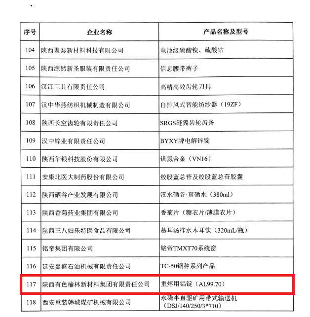 近日,陜西省工業(yè)和信息化廳公布了第二批“陜西工業(yè)精品”名單,榆林新材料集團(tuán)產(chǎn)品重熔用鋁錠(AL99.70)榜上有名。