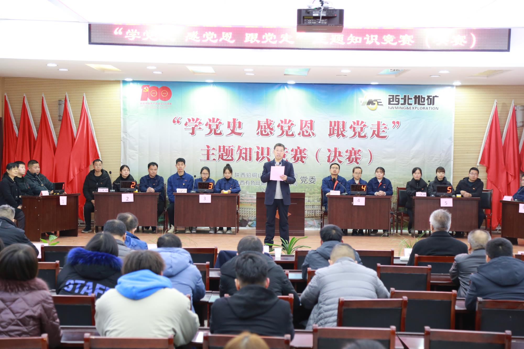 為深化黨史學(xué)習(xí)教育,激勵廣大黨員干部職工以賽促學(xué)、以學(xué)促行,12月8日晚,地礦集團(tuán)鉛硐山(旺峪)礦業(yè)公司黨委在公司教培中心舉辦了以“學(xué)黨史 感黨恩 跟黨走”為主題的知識競賽。地礦集團(tuán)副總經(jīng)理,公司黨委書記、董事長毛有平等公司領(lǐng)導(dǎo)班子成員到場觀賽。