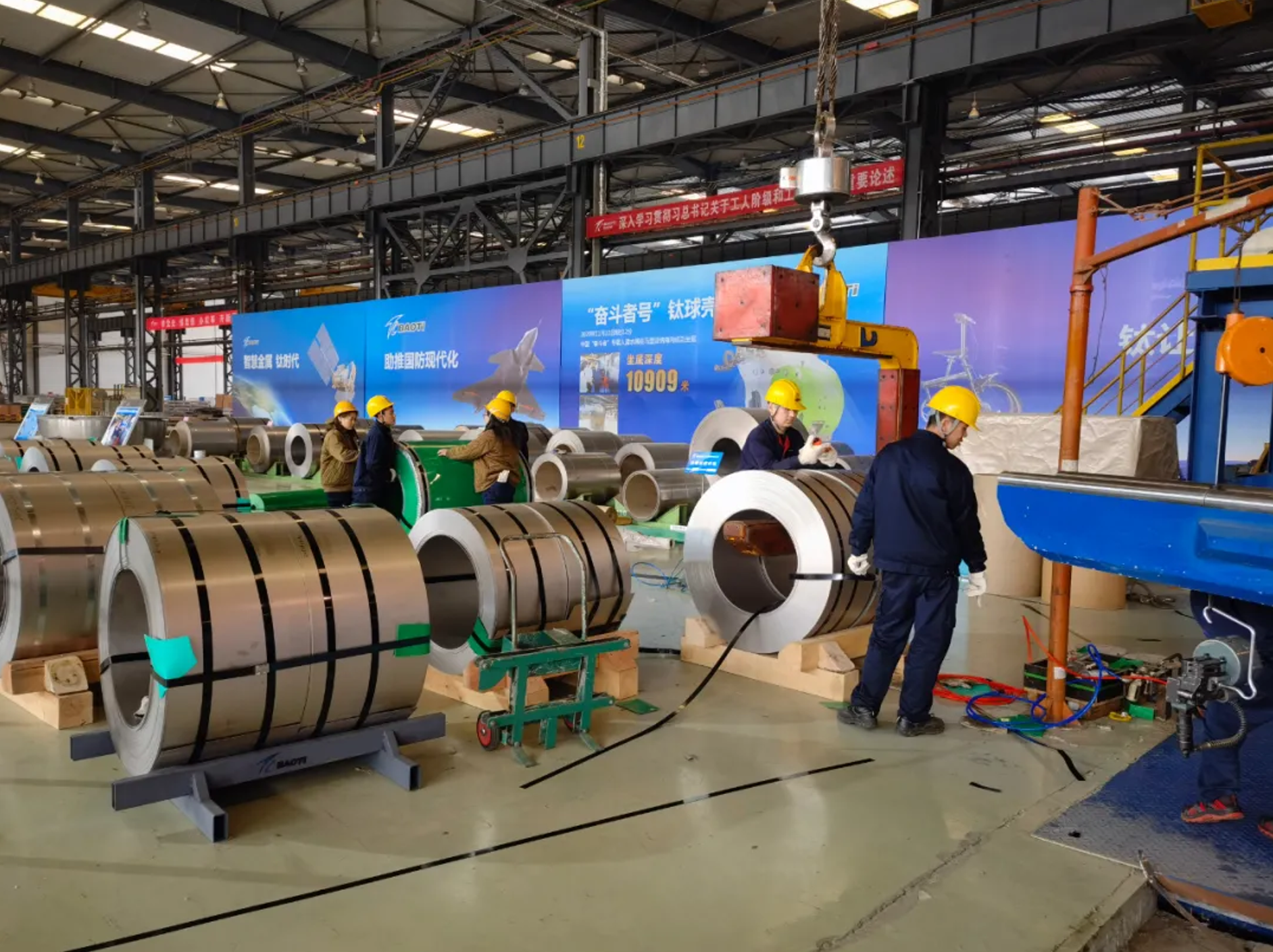 鈦帶公司認(rèn)真貫徹落實(shí)黨的十九屆六中全會(huì)精神,緊緊錨定“15551”高質(zhì)量發(fā)展行動(dòng)綱領(lǐng),以“清合同保平安,聚合力穩(wěn)增長”為指引,凝心聚力、全力沖刺,超額完成了全年生產(chǎn)目標(biāo)。截至目前,鈦帶公司板帶材產(chǎn)量同比增長64.4%,產(chǎn)值同比增長59.5%。