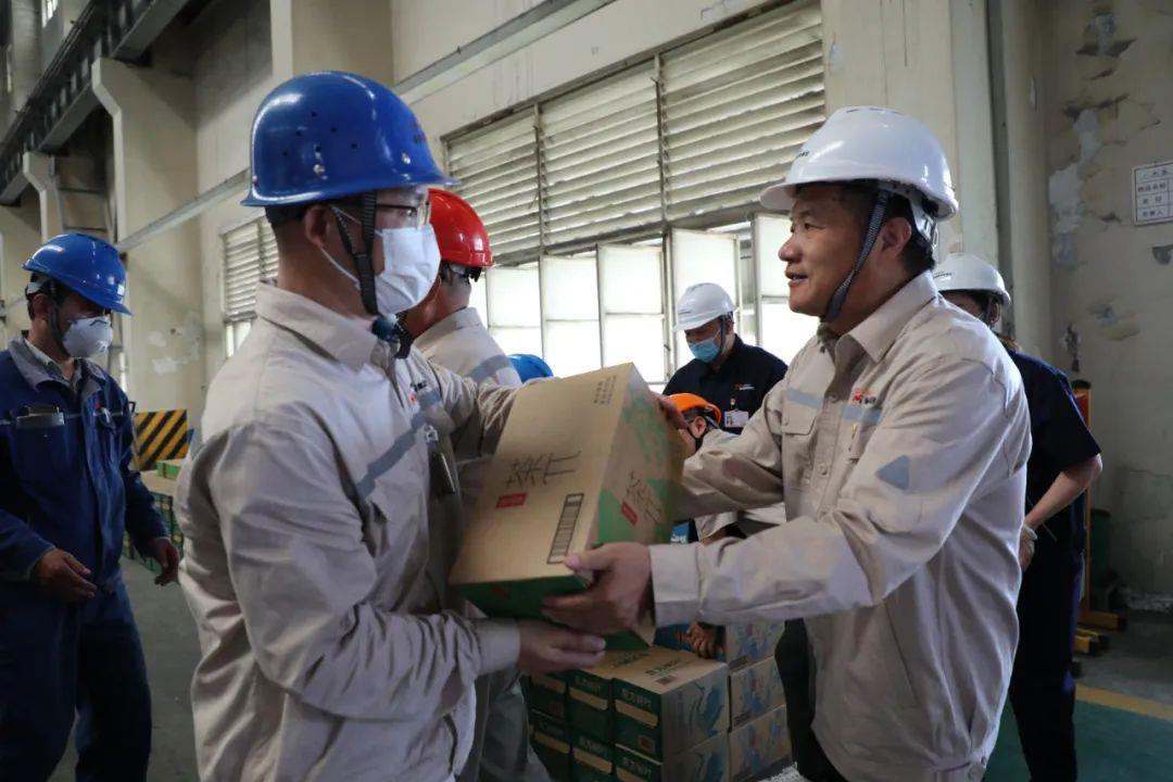 7月7日,恰逢小暑節(jié)氣,榆林新材料集團(tuán)黨委書記、董事長(zhǎng)高曉兵到鋁業(yè)分公司看望一線職工并向他們發(fā)放“送清涼”慰問品。新材料集團(tuán)黨委副書記、工會(huì)主席孫書平陪同。