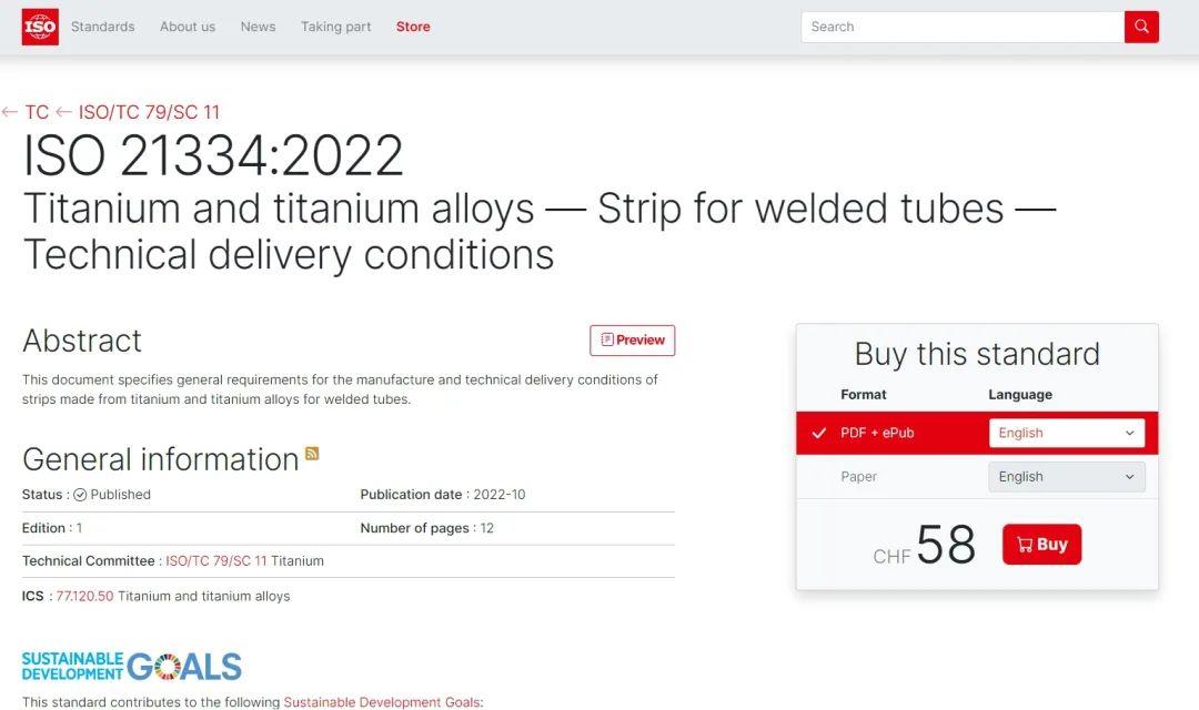 日前,國際標(biāo)準(zhǔn)化組織(ISO)正式發(fā)布了寶鈦集團(tuán)主導(dǎo)制定的鈦領(lǐng)域國際標(biāo)準(zhǔn)《Titanium and titanium alloys — Strip for welded tube-Technical delivery conditions》(ISO 21334-2022)。這是首個(gè)由中國主導(dǎo)的ISO鈦加工材國際標(biāo)準(zhǔn),也是繼今年4月寶鈦主導(dǎo)制定的首個(gè)ISO標(biāo)準(zhǔn)《Titanium and Titanium alloys—Designation system》(ISO 23515-2022)正式發(fā)布實(shí)施之后,公司在鈦領(lǐng)域標(biāo)準(zhǔn)國際化上取得的又一項(xiàng)重要成果。