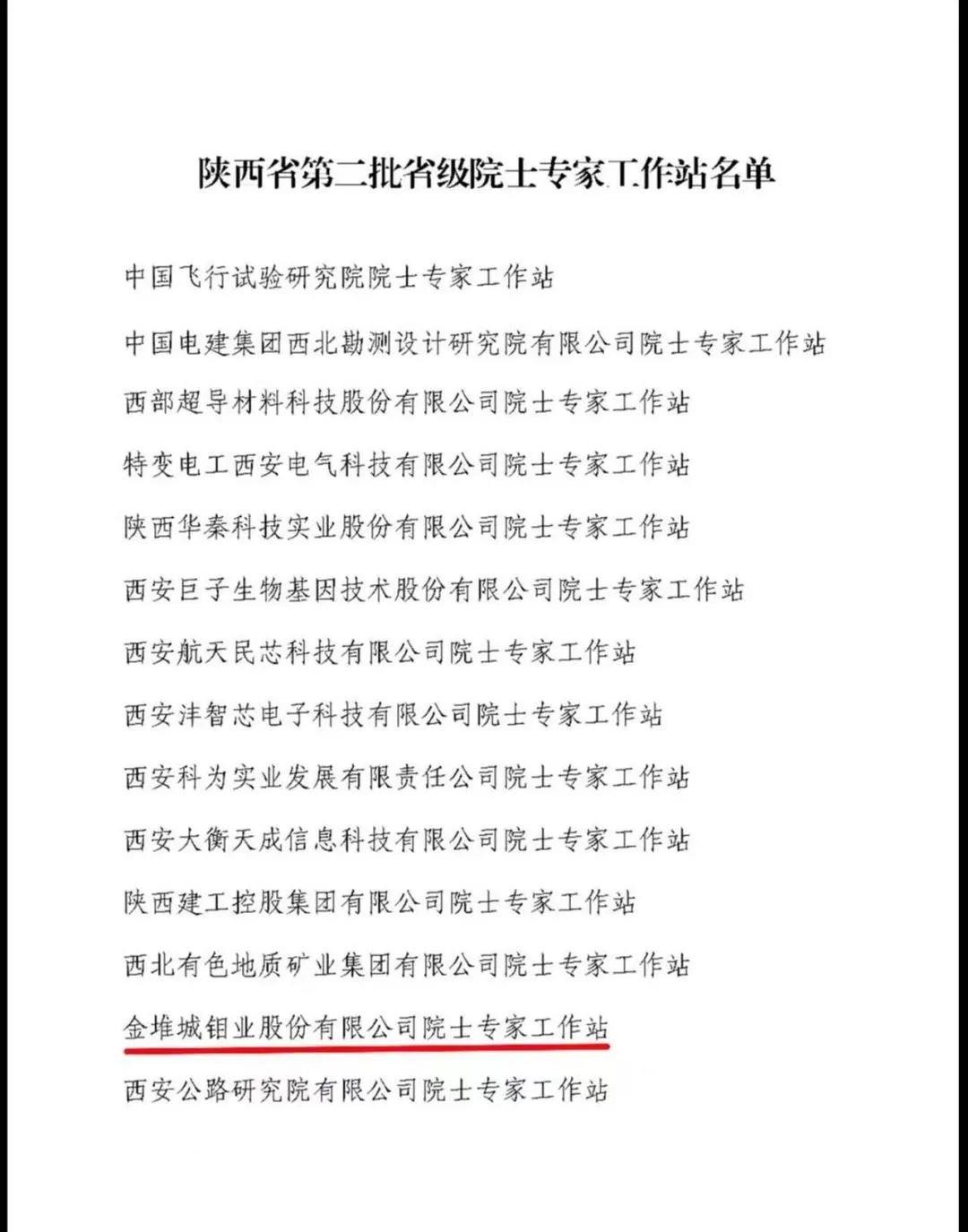 近日,從陜西省科協(xié)獲悉,金鉬股份順利通過陜西省第二批省級院士專家工作站評審。