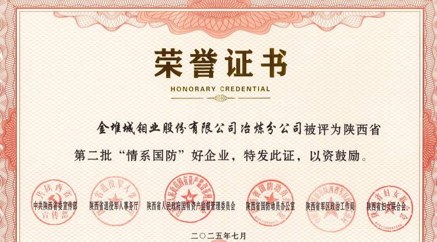 近日,陜西省第二批“情系國防”先進(jìn)典型發(fā)布儀式在西安舉行,現(xiàn)場向全省8位“情系國防”好民兵、8位“情系國防”好(鄉(xiāng)鎮(zhèn)、街道)書記、8個(gè)“情系國防”好家庭、6家“情系國防”好企業(yè)頒獎(jiǎng)。金鉬股份冶煉分公司被評為陜西省第二批“情系國防”好企業(yè)。