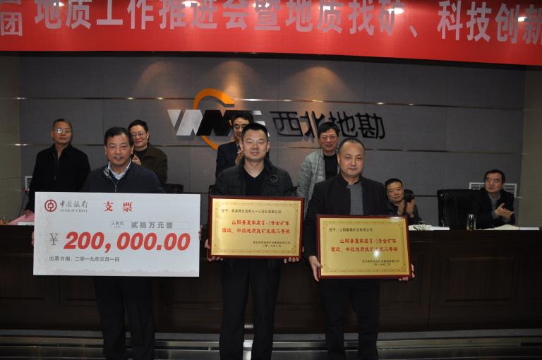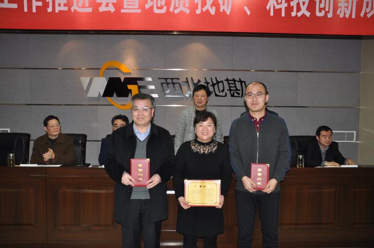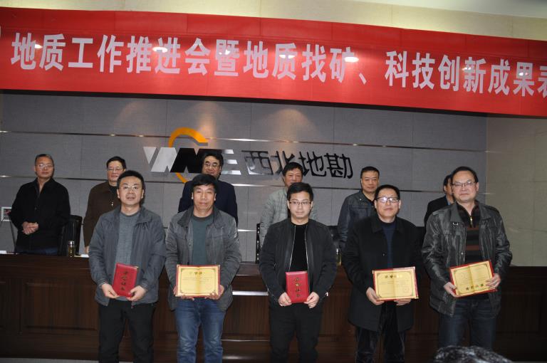 會議對地礦集團(tuán)、黃金集團(tuán)地質(zhì)找礦和科技創(chuàng)新成果進(jìn)行了表彰獎勵。授予713總隊(duì)、山陽秦鼎礦業(yè)有限公司“2018年度地質(zhì)找礦發(fā)現(xiàn)獎二等獎”,獎勵胡遠(yuǎn)平、胡興旺、王亞偉、王向陽、李劍斌等技術(shù)人員20萬元;授予“智能化自動注射進(jìn)樣多通道原子熒光光度計(jì)的研制與應(yīng)用技術(shù)研究”項(xiàng)目“科技創(chuàng)新成果獎”,獎勵3萬元;授予李日升博士“先進(jìn)科技工作者”榮譽(yù)稱號,獎勵5千元;授予地礦集團(tuán)地球物理院士專家工作站“先進(jìn)科技集體”榮譽(yù)稱號,獎勵1萬元;授予陜西省貴金屬材料創(chuàng)新中心“2018年度科技創(chuàng)新突出貢獻(xiàn)獎”,獎勵3萬元。地礦集團(tuán)、黃金集團(tuán)領(lǐng)導(dǎo)為獲獎代表頒發(fā)了證書和獎金。