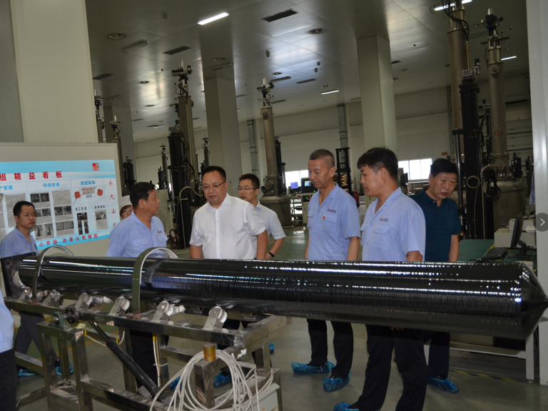 王天雄一行在光電科技公司黨委書記、董事長范江峰,總經(jīng)理田建之陪同下參觀了鑄錠、單晶、硅片、電池、組件事業(yè)部,對光電科技單體產(chǎn)線滿產(chǎn)運(yùn)行、職工精神面貌等給予肯定。