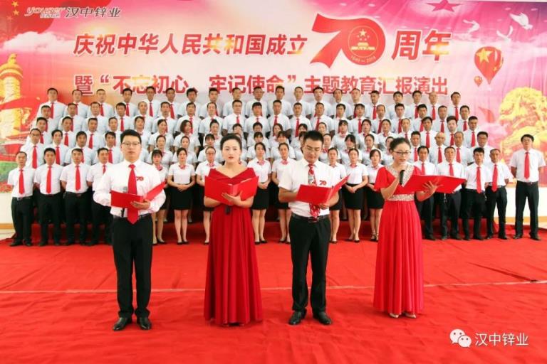 在舉國歡慶中華人民共和國成立70周年之際,為了表達(dá)對祖國母親的赤子之情,大力弘揚(yáng)以愛國主義為核心的偉大民族精神,9月27日,漢中鋅業(yè)公司黨委舉辦了慶祝中華人民共和國成立70周年暨不忘初心、牢記使命主題教育匯報演出。公司黨委委員、副總經(jīng)理王瑜,黨委委員、組織部長楊新宏,副總工程師張焰、劉茨珂,工會副主席劉洪軍等同志參加活動。