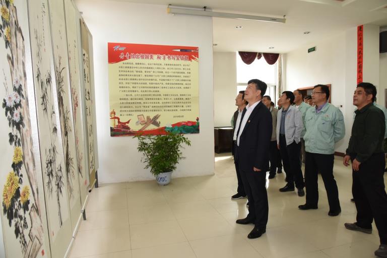 簽名活動結束后,公司領導又前往老區(qū)文體中心,參觀了 “愛祖國 愛寶鈦”慶祝中華人民共和國成立70周年職工書畫展。本次展覽共收到了職工家屬精心創(chuàng)作的200余幅作品,展現(xiàn)了廣大職工家屬愛國愛黨、愛寶鈦愛生活的積極向上的精神風貌。