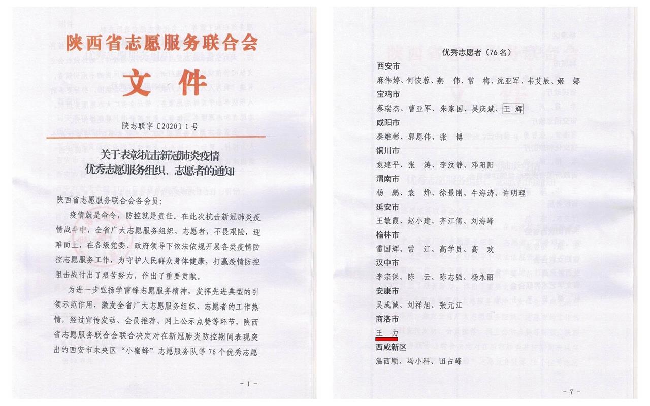 日前,陜西省志愿服務聯合會決定對在全省新冠肺炎疫情防控期間表現突出的76個優(yōu)秀志愿服務組織和76名優(yōu)秀志愿者進行表彰。陜西五洲礦業(yè)股份有限公司黨員王力同志榮獲“陜西省抗疫優(yōu)秀志愿者”榮譽稱號。