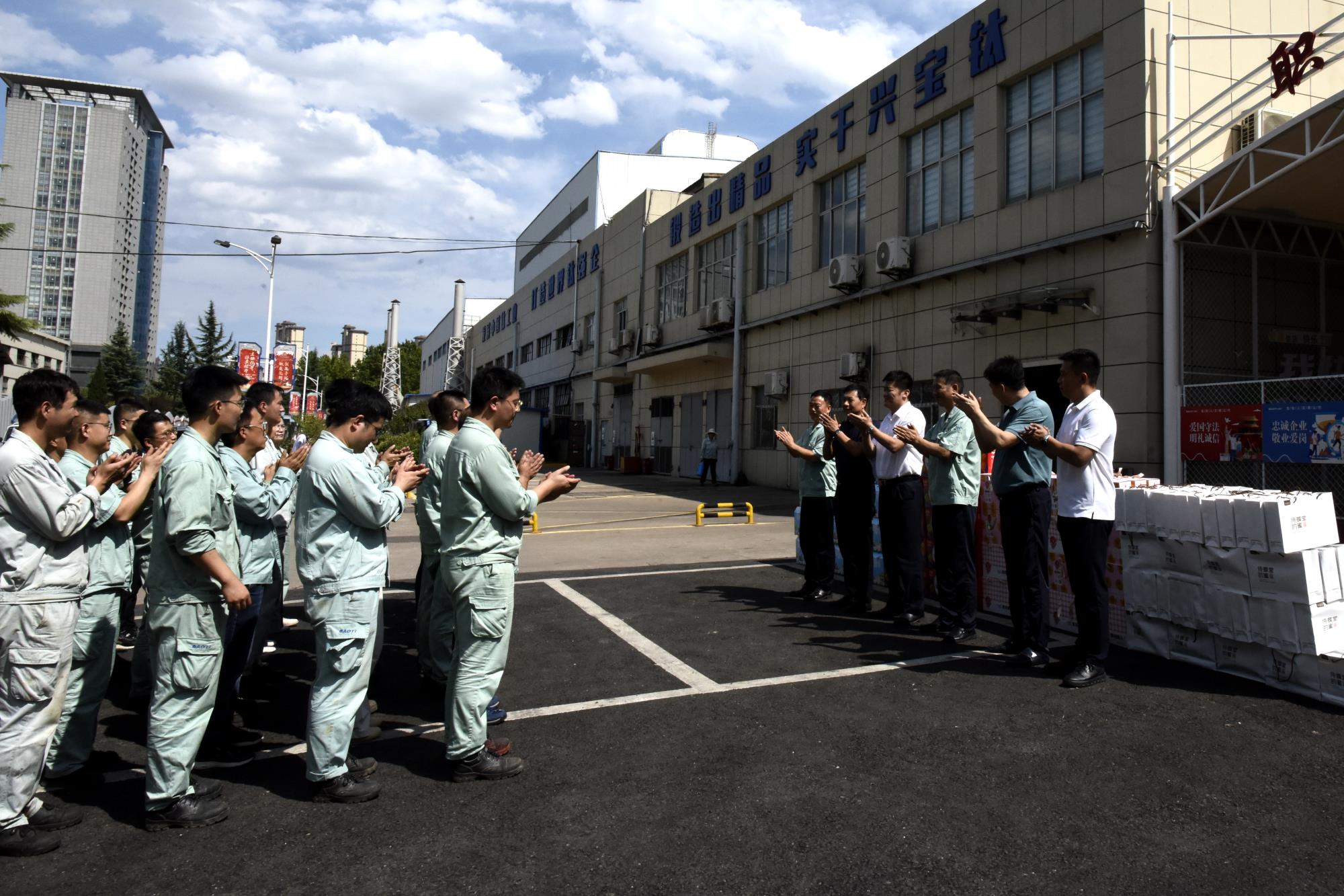 高溫送清涼,點滴沁人心。8月19日下午,陜西有色金屬集團黨委副書記、董事、工會主席王小慶一行到寶鈦集團開展“送清涼”慰問活動,為奮戰(zhàn)在高溫一線的職工送去關(guān)懷與清涼。寶鈦集團領(lǐng)導王儉、賀治民及相關(guān)人員一同慰問。