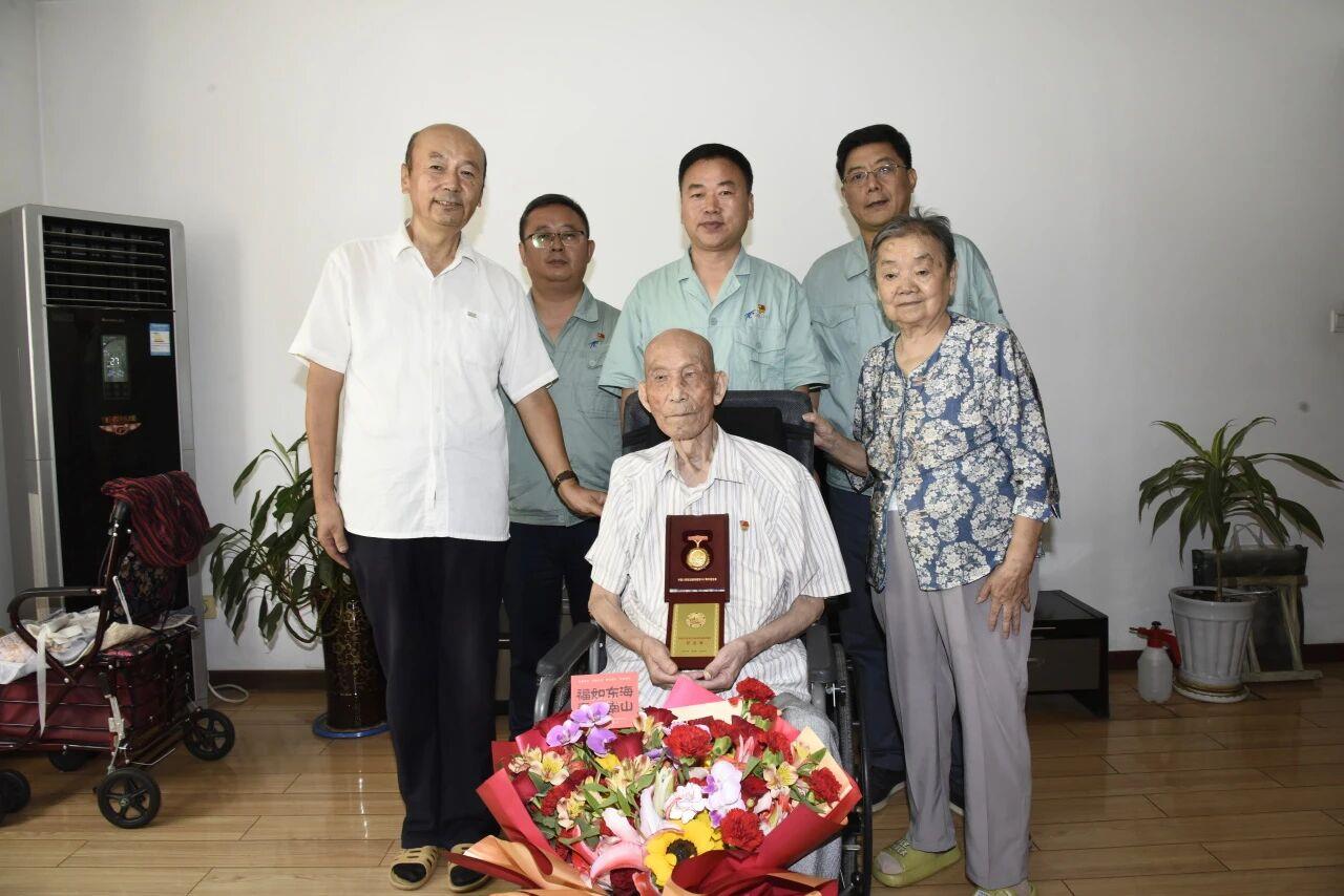 日前,在紀念中國人民抗日戰(zhàn)爭暨世界反法西斯戰(zhàn)爭勝利80周年之際,寶鈦集團黨委副書記、工會主席賀治民一行走訪慰問97歲抗戰(zhàn)老戰(zhàn)士、寶鈦集團離休干部劉兆華,并為他頒發(fā)“中國人民抗日戰(zhàn)爭勝利80周年”紀念章。