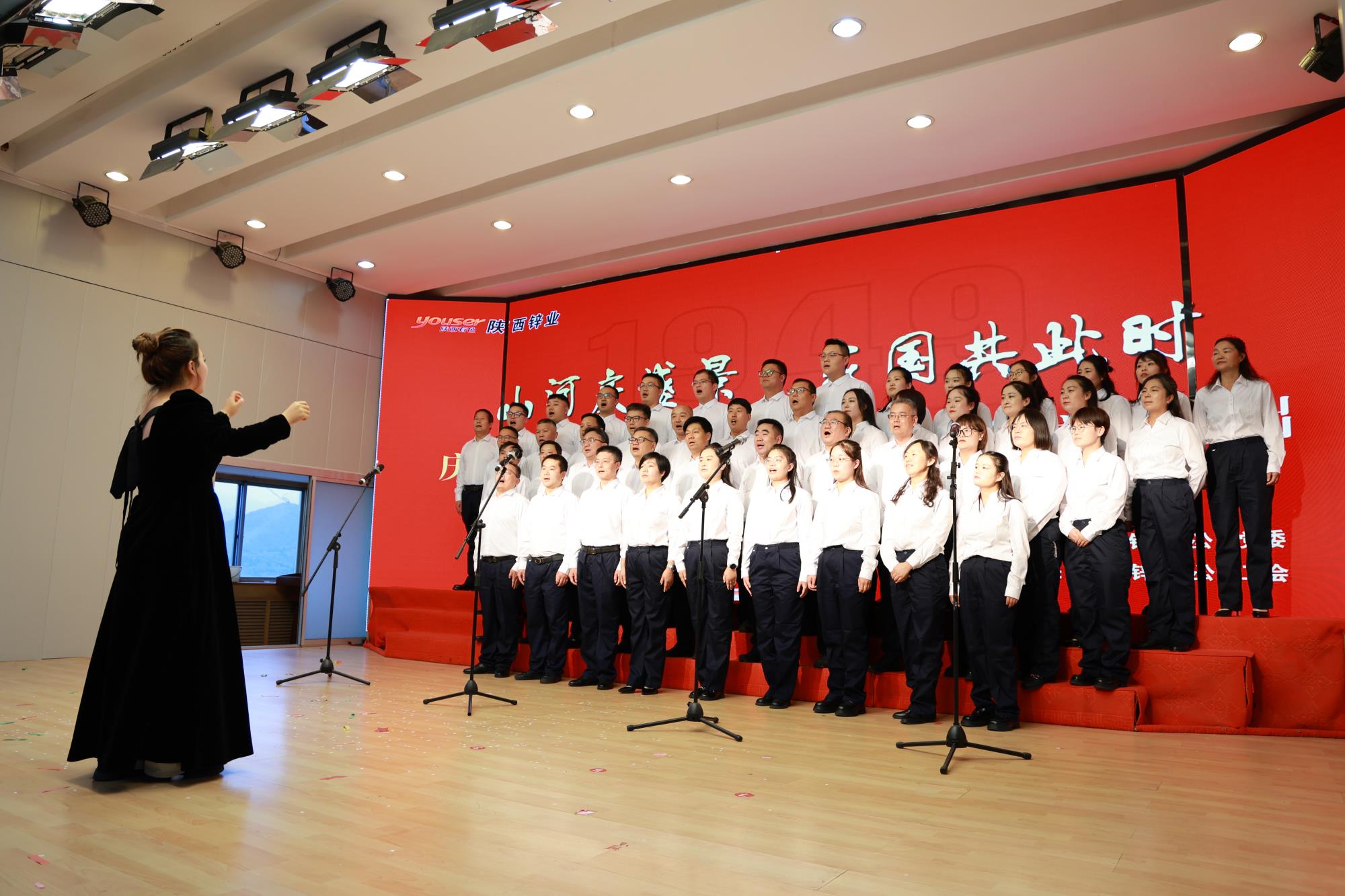 演出最后,公司領導班子成員與機關聯合分會等五十人組成的合唱團壓軸登場,共同高歌《沒有共產黨就沒有新中國》和《歌唱祖國》。當熟悉的旋律響起,全場職工自發(fā)肅立齊聲合唱,嘹亮的歌聲響徹全場,將整場演出的熱烈氛圍推向最高潮,也為此次文藝匯演劃上了一個圓滿的句號。