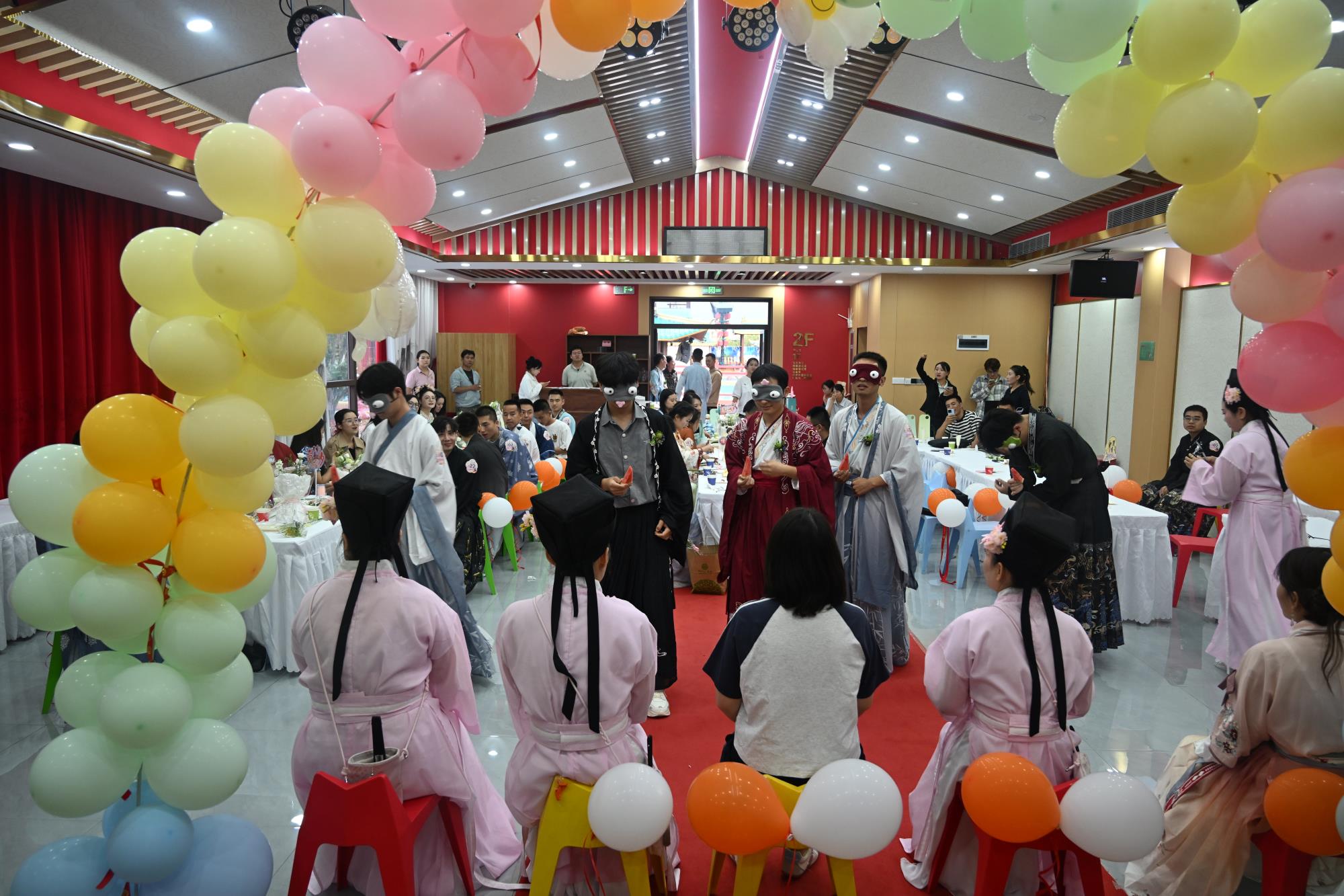 活動(dòng)伊始,身著典雅漢服的青年男女在花月薈主入口簽到,領(lǐng)取專屬胸針與手環(huán),于古韻氛圍中沉浸式感受傳統(tǒng)文化魅力。在隨后的游園定向挑戰(zhàn)環(huán)節(jié),男女嘉賓在繽紛花海中合影留念,協(xié)力完成“終極考官”設(shè)定的趣味任務(wù);高潮迭起的“喜從天降拋繡球”點(diǎn)燃全場熱情,成功搶得繡球的嘉賓組成“繡球CP”;在小劇場二樓,“愛情實(shí)驗(yàn)室”趣味游戲輪番上演,“桃花朵朵開”“蒙眼遞西瓜”……現(xiàn)場氣氛溫馨融洽。在主持人的鼓勵(lì)下,多位嘉賓勇敢表達(dá)心意,最終公司5名單身青年成功牽手,收獲全場熱烈掌聲與美好祝福。