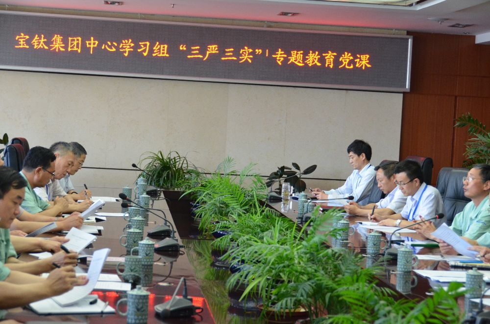6月9日,寶鈦集團(tuán)黨委中心學(xué)習(xí)組在機(jī)關(guān)九樓會(huì)議室召開(kāi)“三嚴(yán)三實(shí)”專題學(xué)習(xí)會(huì),集中學(xué)習(xí)了習(xí)近平總書(shū)記關(guān)于“三嚴(yán)三實(shí)”的論述以及省委書(shū)記趙正永在全省“三嚴(yán)三實(shí)”專題教育黨課會(huì)議上的講話。隨后,黨委書(shū)記王文生作了題為《樹(shù)立嚴(yán)實(shí)工作態(tài)度,創(chuàng)新驅(qū)動(dòng)企業(yè)發(fā)展》的專題教育黨課。公司領(lǐng)導(dǎo)班子成員及部分副總、黨委部門(mén)負(fù)責(zé)人參加了會(huì)議。 王文生指出,4月10日,中央專門(mén)下發(fā)《關(guān)于在縣處級(jí)以上領(lǐng)導(dǎo)干部中開(kāi)展“三嚴(yán)三實(shí)”專題教育方案》,對(duì)專題教育的總體要求、方法措施、組織領(lǐng)導(dǎo)作出了安排部署。5月27日,陜西有色集團(tuán)召開(kāi)“三嚴(yán)三實(shí)”專題教育黨課會(huì)議,并要求從五月份開(kāi)始全系統(tǒng)進(jìn)行“三嚴(yán)三實(shí)”專題教育,黃曉平書(shū)記為大家講了黨課。根據(jù)上級(jí)部署,這次教育不以抓集中活動(dòng)的形式開(kāi)展,而是要作為重大政治任務(wù)融入領(lǐng)導(dǎo)干部經(jīng)常性學(xué)習(xí)教育,與日常工作有機(jī)融合、相互促進(jìn)。我們要將學(xué)習(xí)提高認(rèn)識(shí)貫穿始終,采取個(gè)人自學(xué)與中心組學(xué)習(xí)相結(jié)合的方式 ,領(lǐng)導(dǎo)要帶頭講好專題黨課。專題教育的形式,以領(lǐng)導(dǎo)干部講黨課啟動(dòng)開(kāi)局,領(lǐng)導(dǎo)班子其他成員也要在適當(dāng)范圍講黨課,今年的民主生活會(huì)和組織生活會(huì),也要以“三嚴(yán)三實(shí)”為主題,起點(diǎn)要高,要求要嚴(yán)。 王文生強(qiáng)調(diào),要把嚴(yán)實(shí)的工作方法落到實(shí)處,有規(guī)劃、有步驟地作好企業(yè)發(fā)展中的各項(xiàng)工作。要在“一帶一路”、“中國(guó)制造2025”戰(zhàn)略、“工業(yè)4.0”等重大機(jī)遇面前,加快公司的“兩化融合”步伐,以創(chuàng)新驅(qū)動(dòng)企業(yè)發(fā)展。要通過(guò)“三嚴(yán)三實(shí)”專題教育,對(duì)黨員領(lǐng)導(dǎo)干部的精神狀態(tài)、作風(fēng)養(yǎng)成、能力素質(zhì)提出更高標(biāo)準(zhǔn)、更高要求,打造一支高素質(zhì)的干部隊(duì)伍,團(tuán)結(jié)帶領(lǐng)廣大職工群眾高效推進(jìn)企業(yè)的改革發(fā)展。