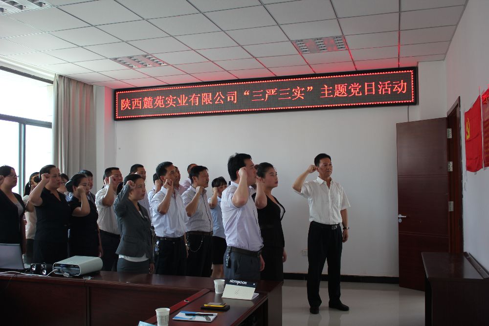 7月8日下午,麓苑公司為隆重慶祝建黨94周年,舉行了“三嚴(yán)三實(shí)”主題黨日活動(dòng)暨第一次集中研討交流活動(dòng)。公司黨總支書(shū)記田建之主持會(huì)議,全體黨員和積極分子參加了此次活動(dòng)。 會(huì)上,田建之傳達(dá)了省委、陜西有色集團(tuán)黨委有關(guān)文件精神,圍繞“三嚴(yán)三實(shí)”主題并結(jié)合實(shí)施方案舉行此次活動(dòng)。全體與會(huì)人員觀看了宣教片《永遠(yuǎn)的焦裕祿》,給大家營(yíng)造出了“學(xué)先進(jìn)、找差距、比貢獻(xiàn)”的濃厚氛圍。在黨總支書(shū)記田建之的帶領(lǐng)下全體黨員重溫了入黨誓詞,每名黨員認(rèn)真回顧了入黨宣誓的莊嚴(yán)承諾和堅(jiān)定決心。公司領(lǐng)導(dǎo)班子和部室負(fù)責(zé)人以“對(duì)黨忠誠(chéng)、個(gè)人干凈、敢于擔(dān)當(dāng),做基層的好黨員、好干部”為主題進(jìn)行了第一次“三嚴(yán)三實(shí)”專(zhuān)題學(xué)習(xí)集中研討交流活動(dòng)。公司總經(jīng)理鄧建業(yè)指出,當(dāng)前我國(guó)正處于經(jīng)濟(jì)發(fā)展轉(zhuǎn)型期,國(guó)內(nèi)外形勢(shì)錯(cuò)綜復(fù)雜,領(lǐng)導(dǎo)干部必須堅(jiān)持改進(jìn)作風(fēng),密切聯(lián)系群眾,才能推動(dòng)企業(yè)持續(xù)、健康發(fā)展。 會(huì)議最后,田建之作了總結(jié)講話,要求每位黨員干部都要按照習(xí)近平總書(shū)記提出的“三嚴(yán)三實(shí)”要求,把“對(duì)黨忠誠(chéng)、個(gè)人干凈、敢于擔(dān)當(dāng)”作為座右銘,作為修身之本、為政之道、成事之要,融入黨性修養(yǎng)全過(guò)程,明確作風(fēng)建設(shè)是一項(xiàng)經(jīng)常性、長(zhǎng)期性的工作,努力做到兩手抓、兩不誤。